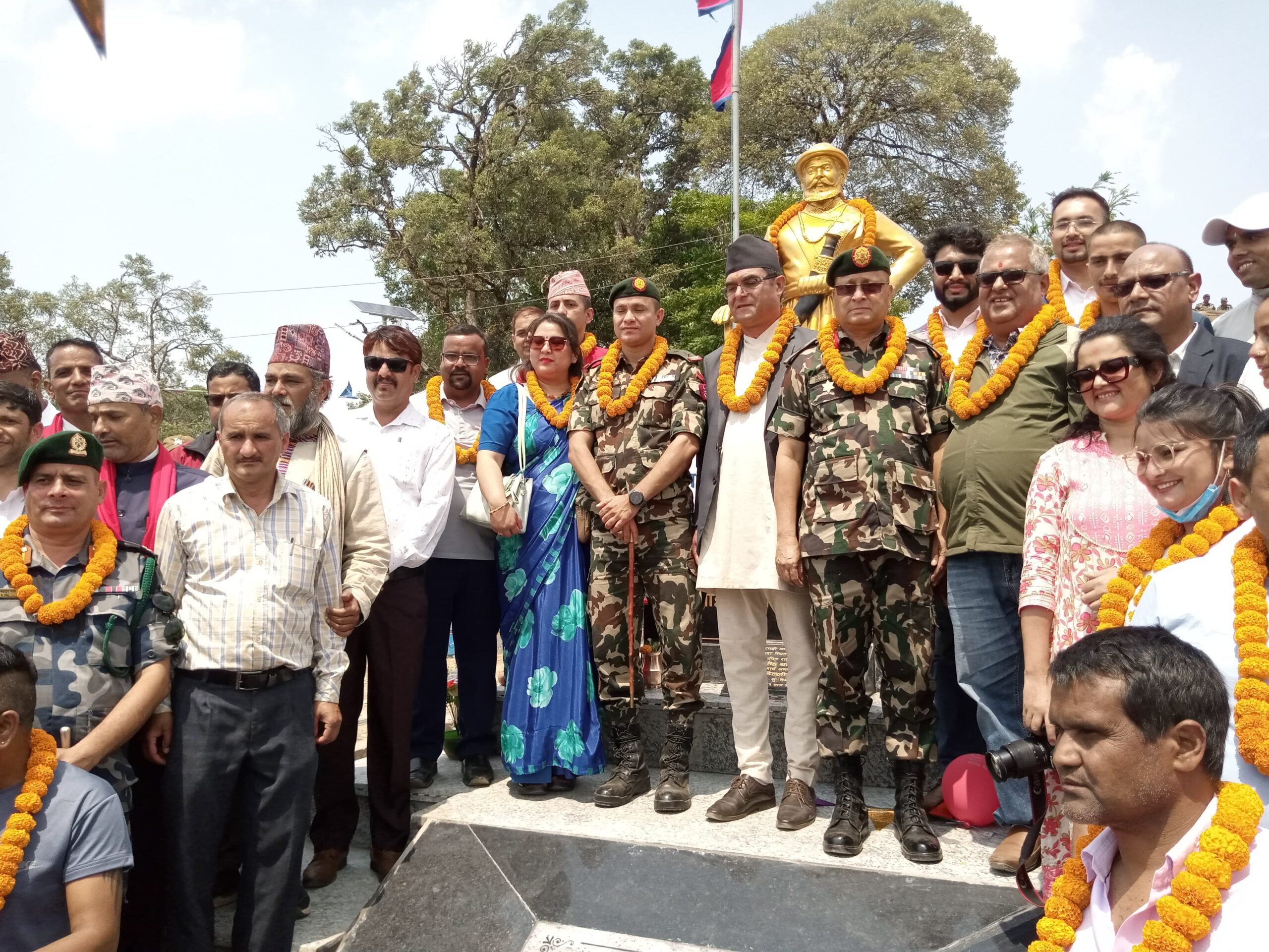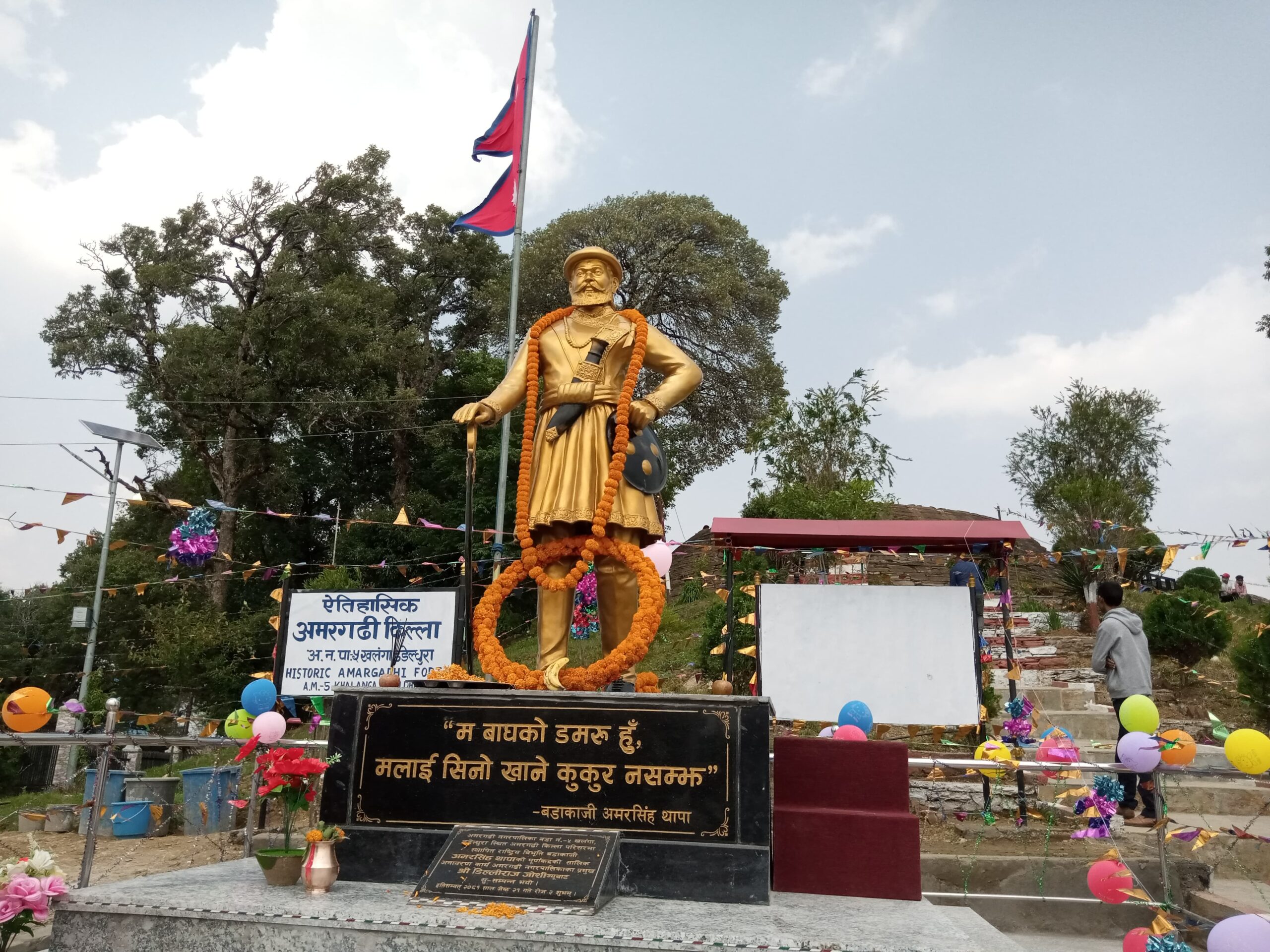 डडेल्धुरा: डडेल्धुरा सदरमुकामस्थित ऐतिहासिक अमरगढी किल्लामा राष्ट्रिय विभूति बडाकाजी अमरसिंह थापाको पूर्णकदको नयाँ सालिक अनावरण गरिएको छ।