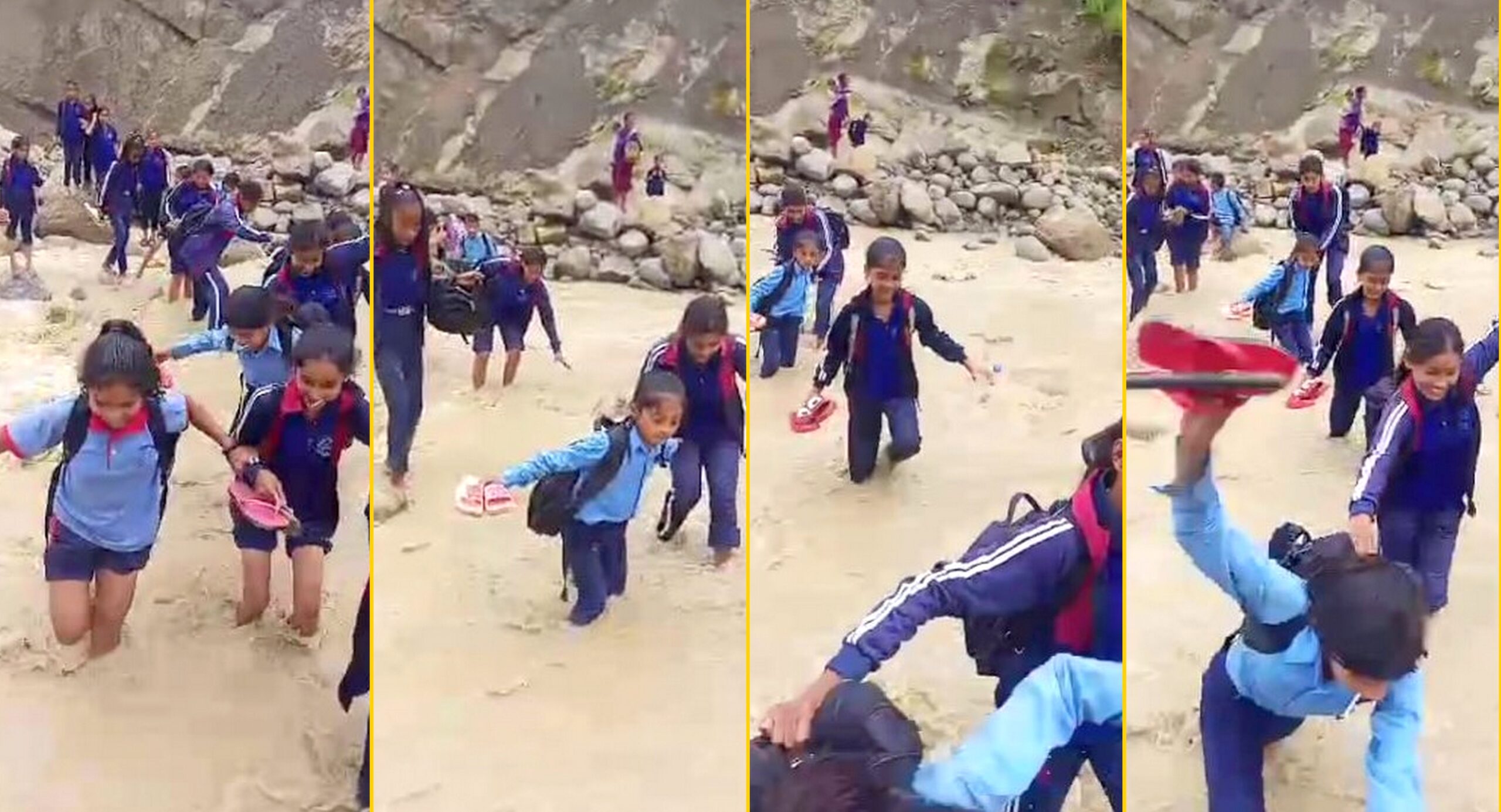 भालुखोलामा पुल नहुँदा ज्यानै जोखिममा राखेर विद्यालय आउँछन् विद्यार्थी