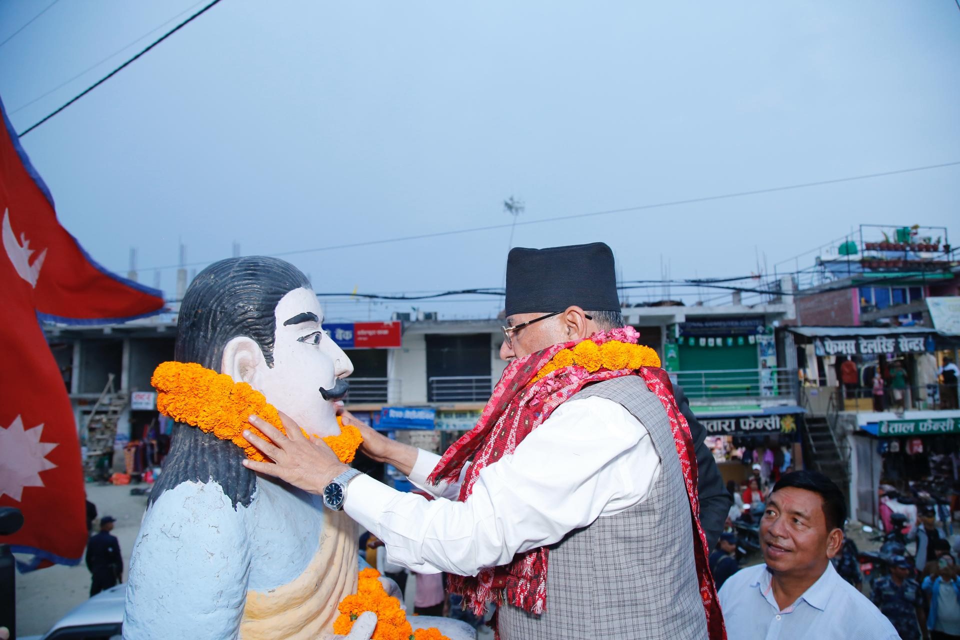 अध्यक्ष प्रचण्डसहितका नेताहरूलाई बागबजारमा नेताकार्यकर्ताहरूले स्वागत गरेका थिए। अध्यक्ष प्रचण्डले अमरगढी नगरपालिका–५ बागबजारमा रहेको शहीद भीमदत्त पन्तको सालिकमा माल्यार्पण गरे।