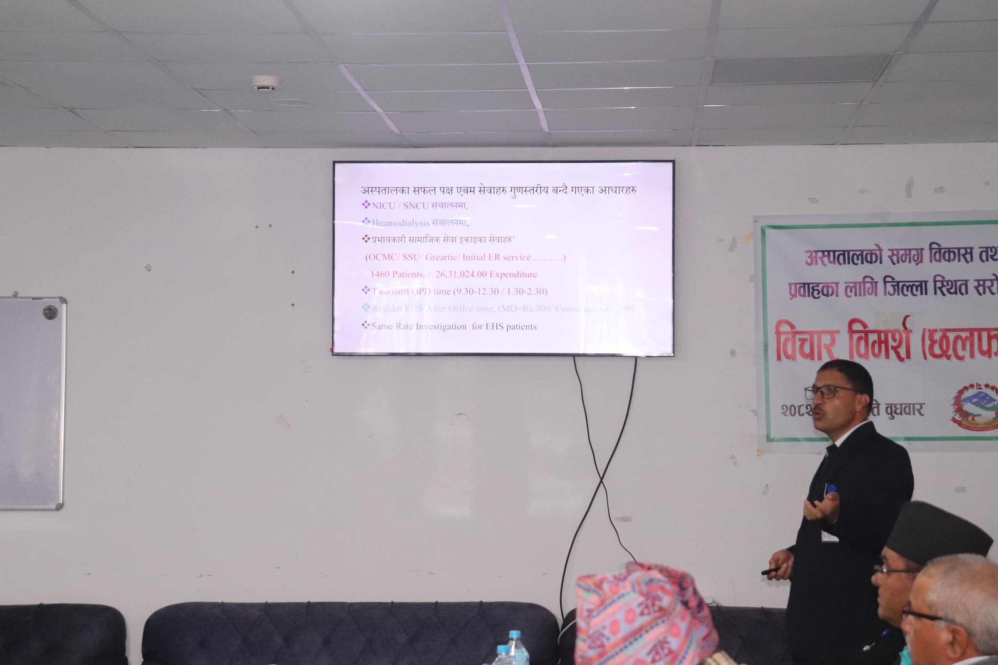 कार्यक्रममा प्रमुख मेडिकल सुपरिटेन्डेन्ट डा. सुधा देवकोटाले दक्ष जनशक्ति अभावका कारण सोचेजस्तो सेवा दिन नसकिएको बताइन्। आफू यहाँ आएदेखि अस्पताललाई सही ट्र्याकमा ल्याउन निरन्तर प्रयासरत रहेको जानकारी दिँदै उनले उपलब्ध स्रोत र साधनको अधिकतम प्रयोग गरेर सेवा सुधारमा लागिपरेको उल्लेख गरिन्।